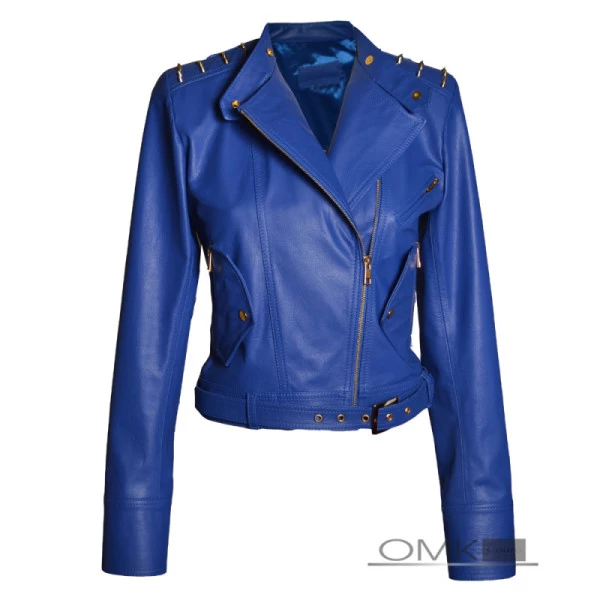 Jaqueta de Couro Feminina Perfecto Ref. 653 Spikes -Azul Royal-GG