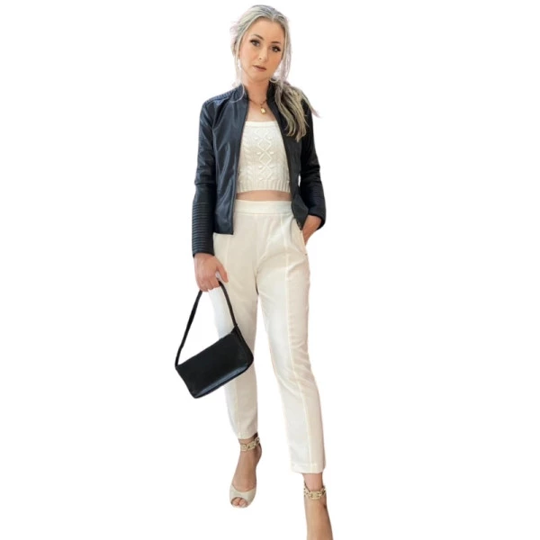 Um dos modelos mais vendidos na OMK, um modelo super versátil e sofisticado Jaqueta de Couro Feminina estilo Biker.