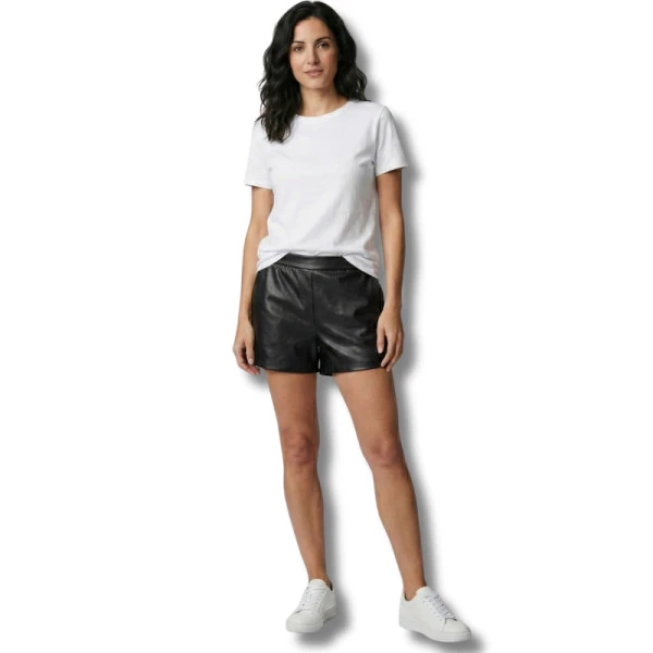 Short com elástico na parte de trás, liso na frente detalhes em zíper na lateral.